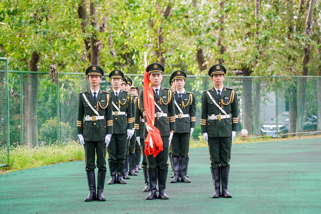 全体人员在升旗台前整装列队,肃穆而立。校国旗护卫队迈着整齐的步伐护送国旗走向升旗台。伴随着雄壮的国歌声,鲜艳的五星红旗冉冉升起。全体人员向国旗行注目礼,齐唱中华人民共和国国歌,向伟大祖国致以崇高的敬意和美好的祝福。校大学生艺术团带来朗诵《不朽》,表达了传承英烈精神、汲取奋进力量的坚定信念。