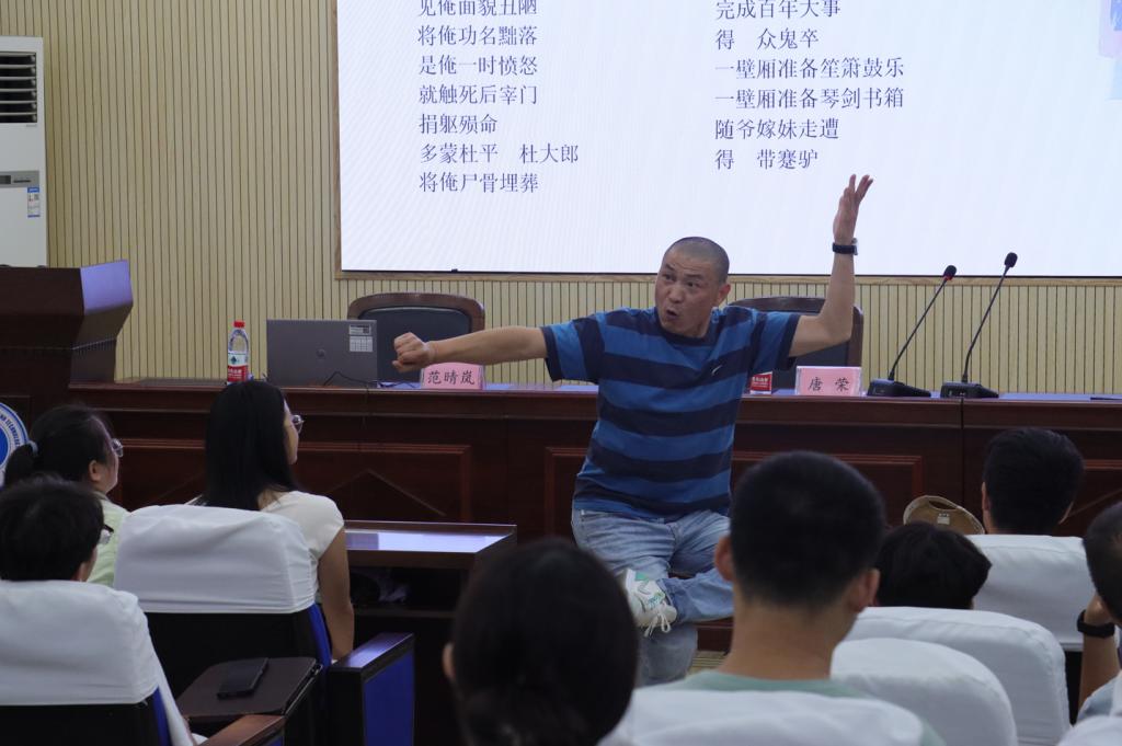 随后,唐荣老师分享了个人艺术生涯的心路历程。从初入行的普通学徒,到历经多次角色选拔的磨砺,再到成长为国家一级演员,他细数职业生涯中的挑战与机遇,强调在每一次关键选择中坚守热爱的重要性。他以自身经历勉励同学们,唯有持之以恒的努力才能收获成果,希望大家在人生道路上坚定信念、追逐理想。