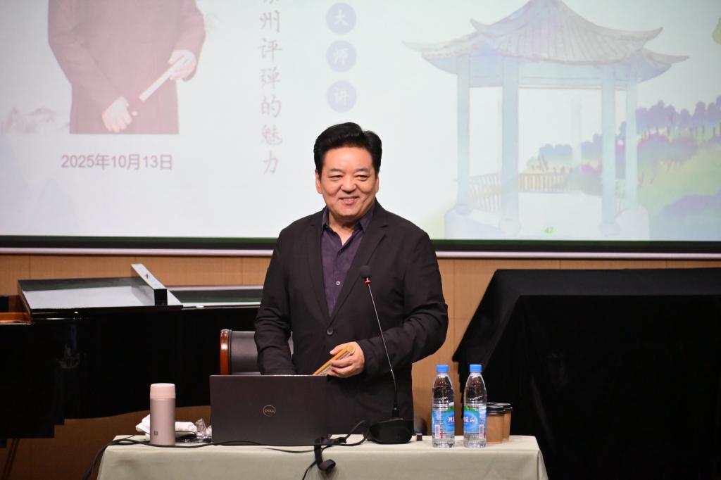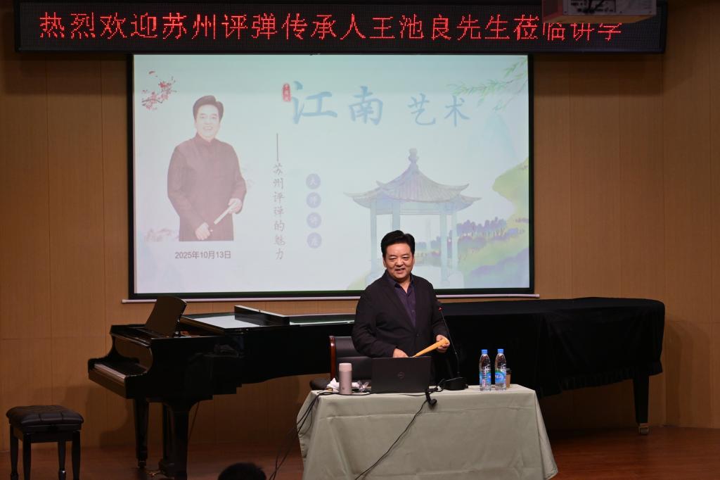 10月13日19:00,省政协第十九届戏曲走近大学生名家授课系列讲座在顺利开讲。本期活动特邀一级演员、苏州市评曲艺家协会主席王池良先生担任主讲,为师生们带来了题为《苏州评弹的魅力》的精彩讲座。