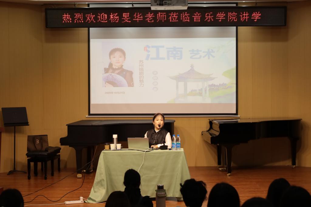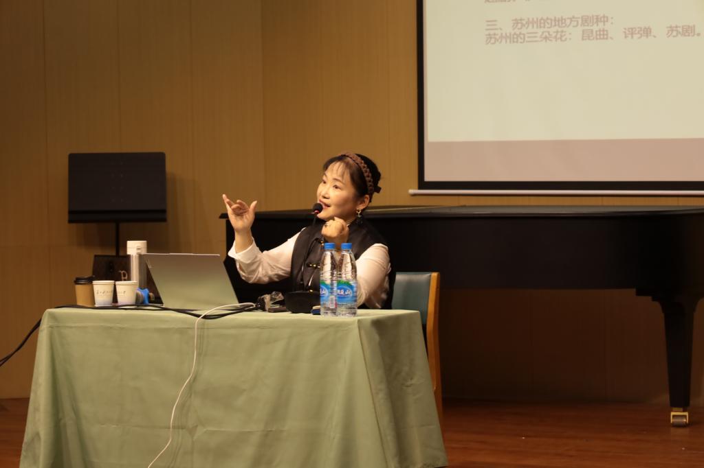 10月27日,一场以“地方戏的主要特色”为主题的戏曲讲座在校园内举行。本次活动特邀苏州市锡剧团一级演员、副团长杨旻华担任主讲,为师生们带来了一场关于地方戏曲的知识普及与艺术赏析。